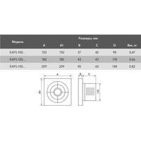 накладной осевой вентилятор, потолочная/настенная установка, диаметр: 15 см, производительность: 320 куб.м/ч, 25 Вт, отдельная кнопка или выключатель света + таймер (задержка отключения), белый