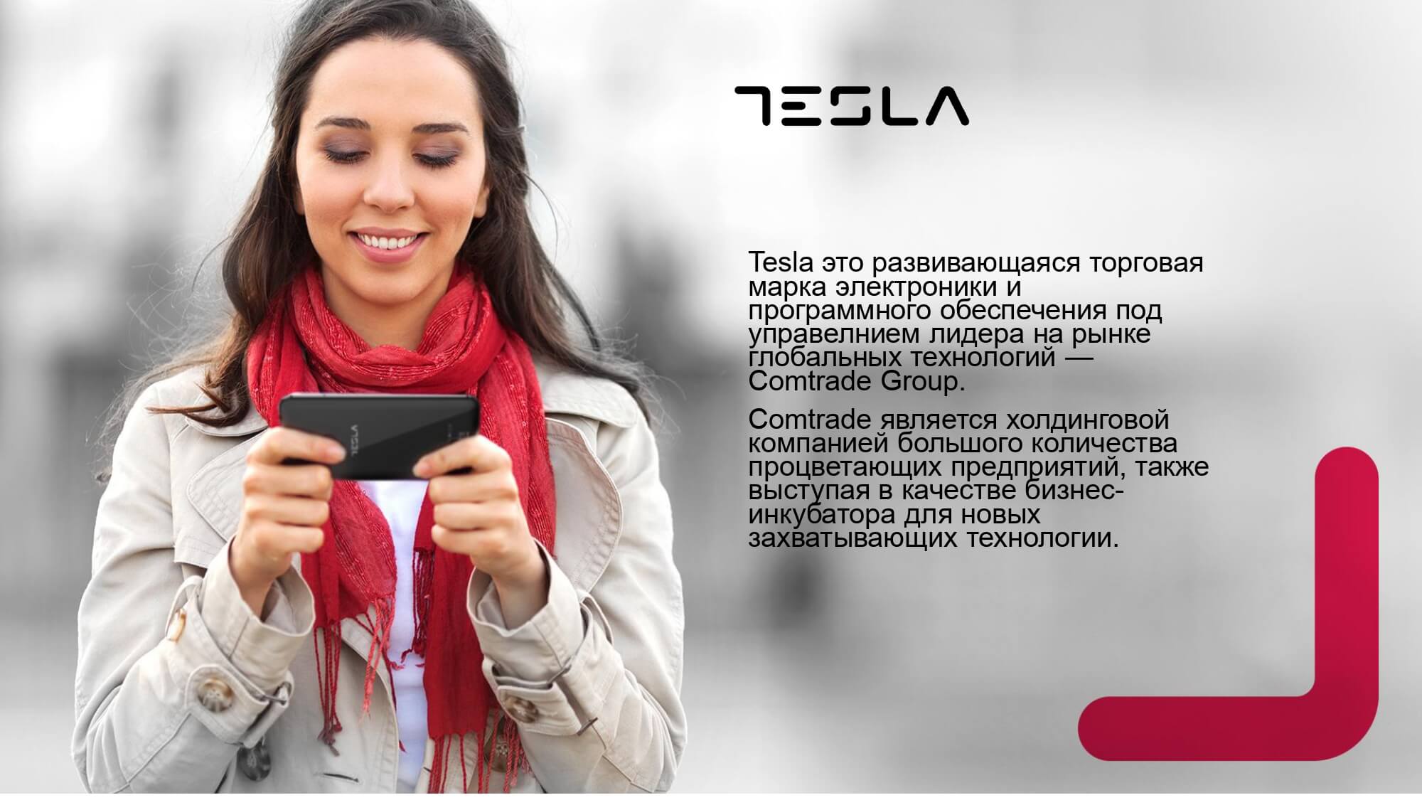 Бренд бытовой техники и электроники Tesla был запущен в 2014 году сербской технологической компанией ComTrade Group, основным видом деятельности которой является разработка програмного обеспечения.