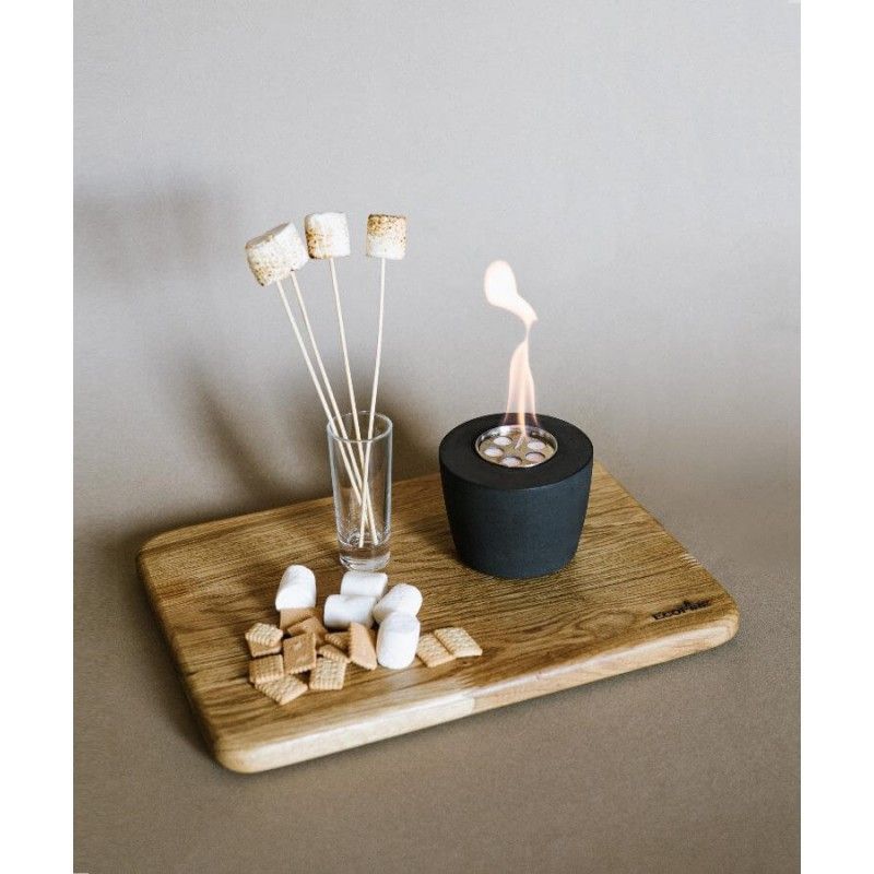 Настольный биокамин из бетона с подставкой из натурального дуба.